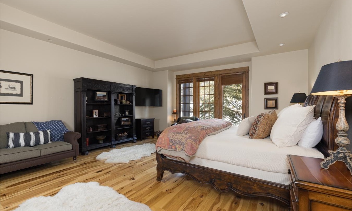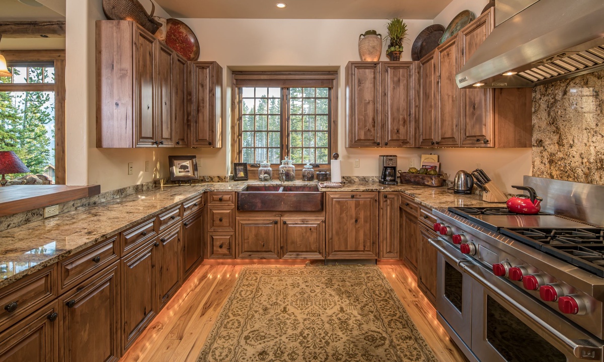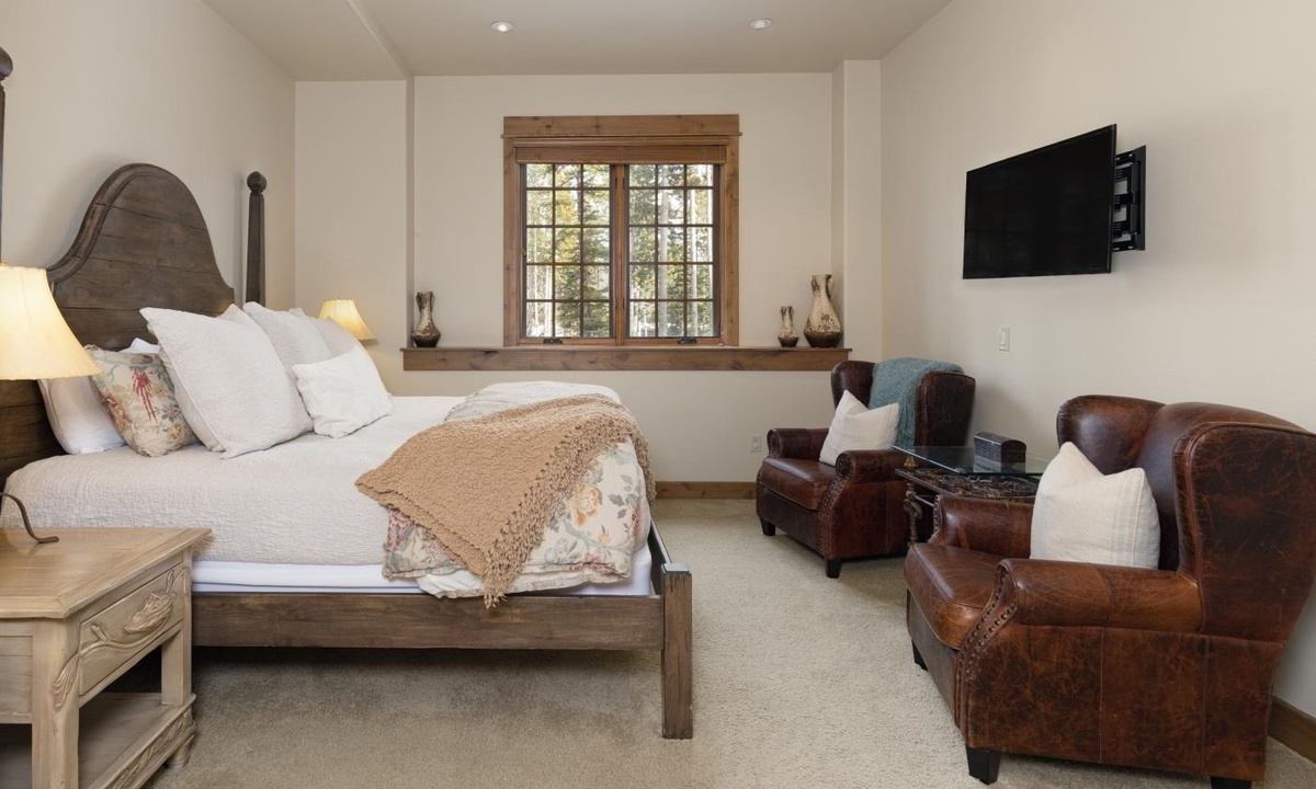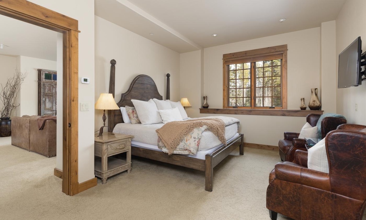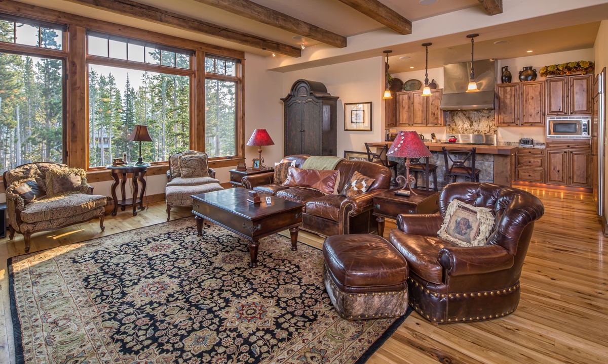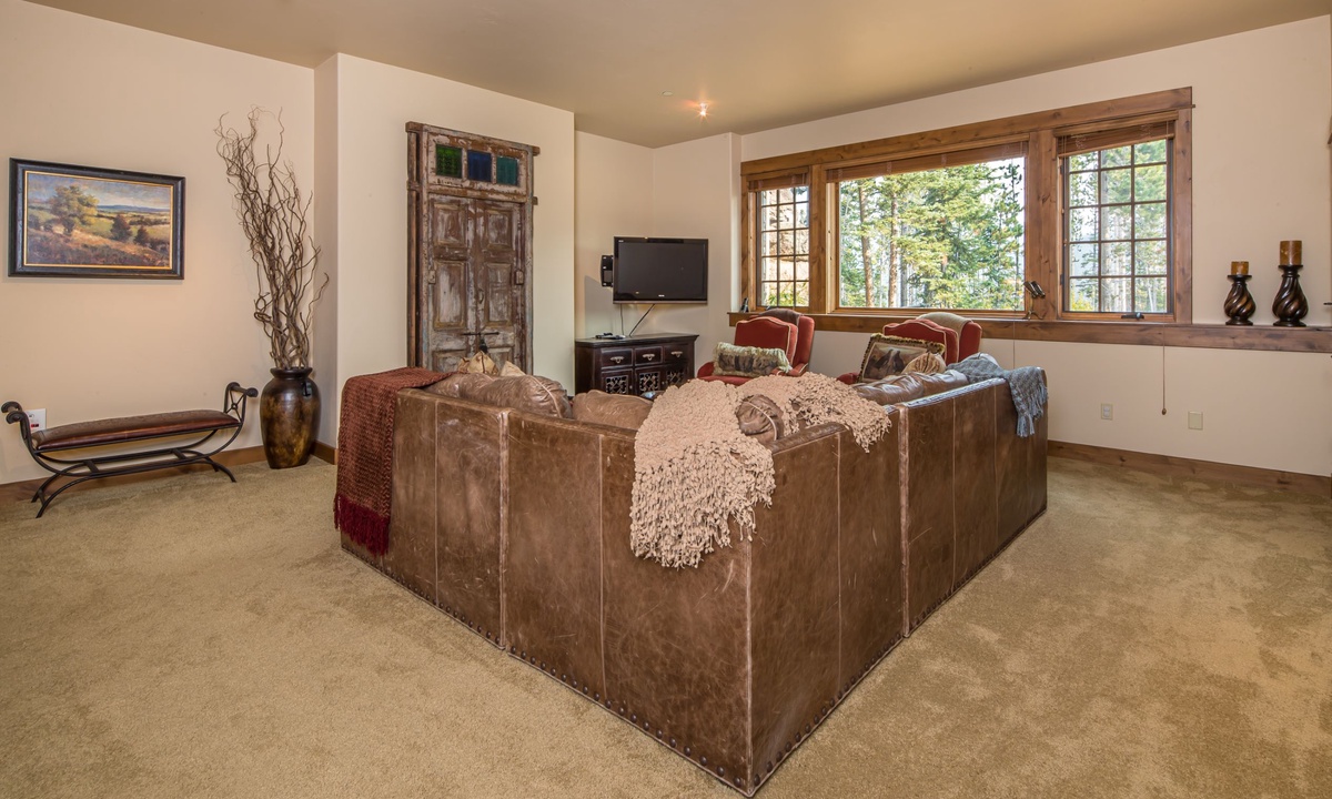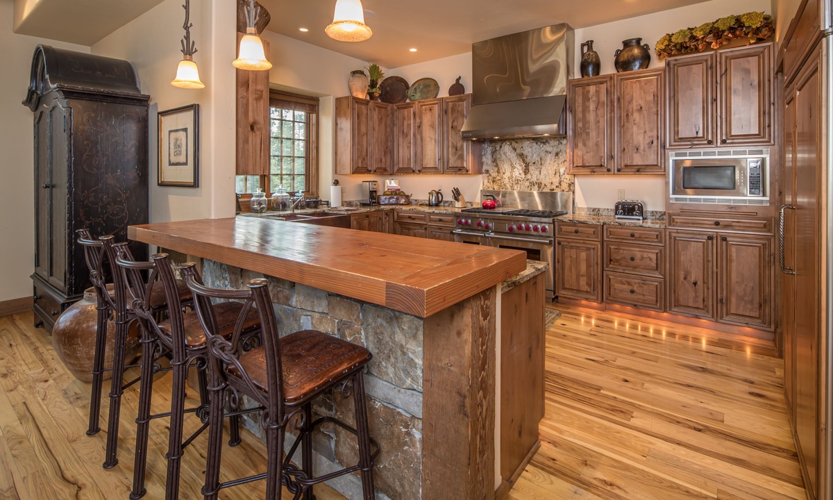 This spacious 4,100+ sq ft Cowboy Heaven Luxury suite is set over three levels and is beautifully appointed with multiple living spaces for large groups to enjoy comfort, privacy and the best in home entertainment. The open plan great room is elegant and inviting with timeless interiors, a welcoming wood burning fireplace, flat screen TV for your entertainment and a luxurious dining area for long, lazy home-cooked meals. The custom kitchen has all you need to cook for a large crowd with high-end stainless appliances, plenty of granite counterspace and modern kitchen amenities. On the lower level of the home is a spacious family room with plenty of comfy seating, a flat screen TV, pool table and custom twin bunks. This luxury Moonlight Basin suite boasts plenty of space to gather with friends and family and create Montana memories.