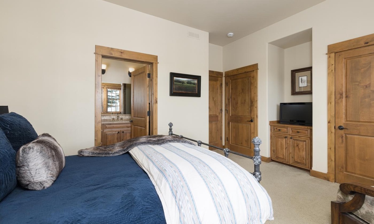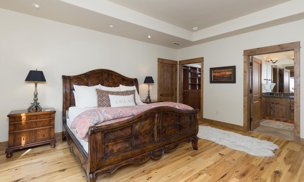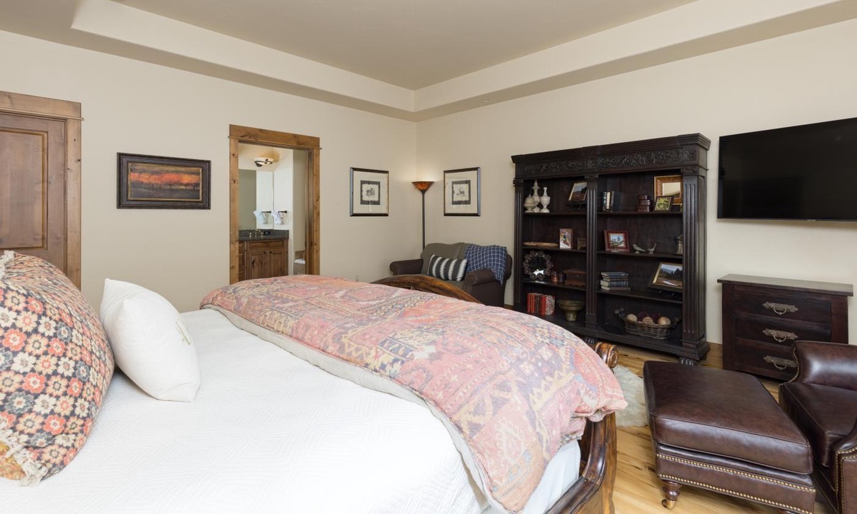 There’s plenty of space for 12 guests to sleep in comfort and at the end of a day of Big Sky adventures, you’ll be glad you booked this gorgeous home. All 4 bedrooms are luxurious and spacious with the finest finishes and private bathrooms. The bedrooms are well thought out for privacy with three bedrooms on the main level and a king size bedroom and bonus bunks on the lower level. This Cowboy Heaven Luxury Suite is the perfect combination of location and luxury.